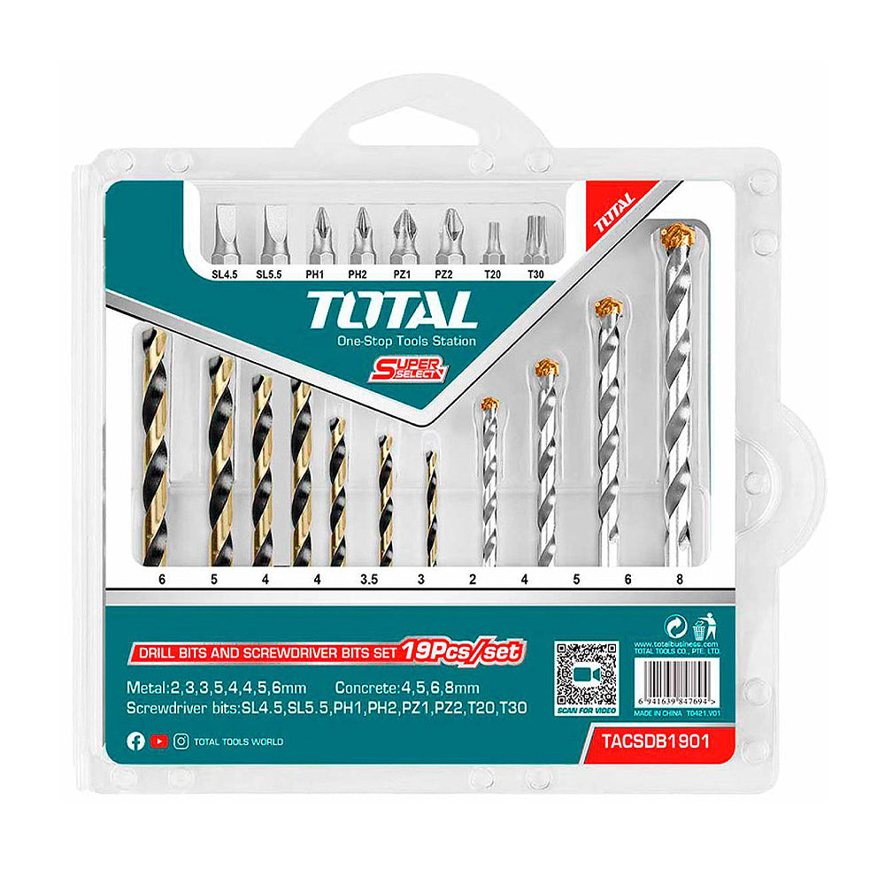 Bộ 19 Mũi khoan kim loại bê tông và Mũi bắt vít TOTAL TACSDB1901