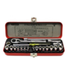 Cần siết tự động 3/8″ kèm đầu chuyển: Trang bị cần siết tự động với cơ chế bánh răng mượt mà, kèm theo đầu chuyển từ 3/8″ sang 1/4″, giúp người dùng sử dụng linh hoạt tất cả các đầu khẩu có trong bộ chỉ với một cần vặn duy nhất.