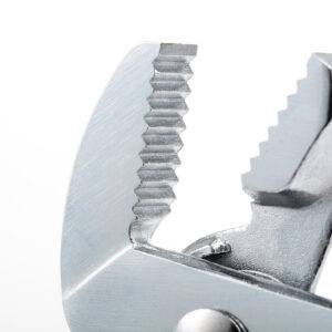 Hàm kẹp răng cưa chắc chắn: Răng kẹp được tôi cứng, có độ bám cực tốt, giúp giữ chặt vật thể mà không bị trượt hay làm biến dạng cạnh của bu lông, ốc vít.