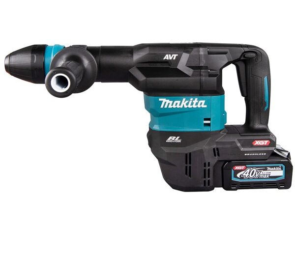 Hướng dẫn bảo quản: Sau khi làm việc, cần dùng khí nén thổi sạch bụi bê tông bám trong khoang đầu gài và khe tản nhiệt. Luôn bôi một lớp mỡ chuyên dụng mỏng vào đuôi mũi đục SDS-Max trước khi gài vào máy. Bảo quản nơi khô ráo. Lưu ý: Máy sử dụng hệ pin 40V Max XGT; để đạt lực đập 9.4J ổn định và thời gian làm việc lâu nhất, nên sử dụng kèm pin dung lượng từ 4.0Ah hoặc 5.0Ah trở lên (như BL4040, BL4050B).
