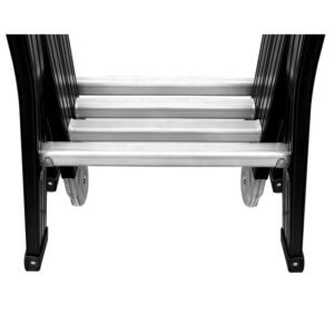 Các bậc thang được dập khía rãnh sâu chống trượt, kết hợp cùng chân đế cao su chuyên dụng có độ bám dính cực cao, giúp thang cố định chắc chắn trên nhiều bề mặt địa hình và bảo vệ sàn nhà không bị trầy xước.